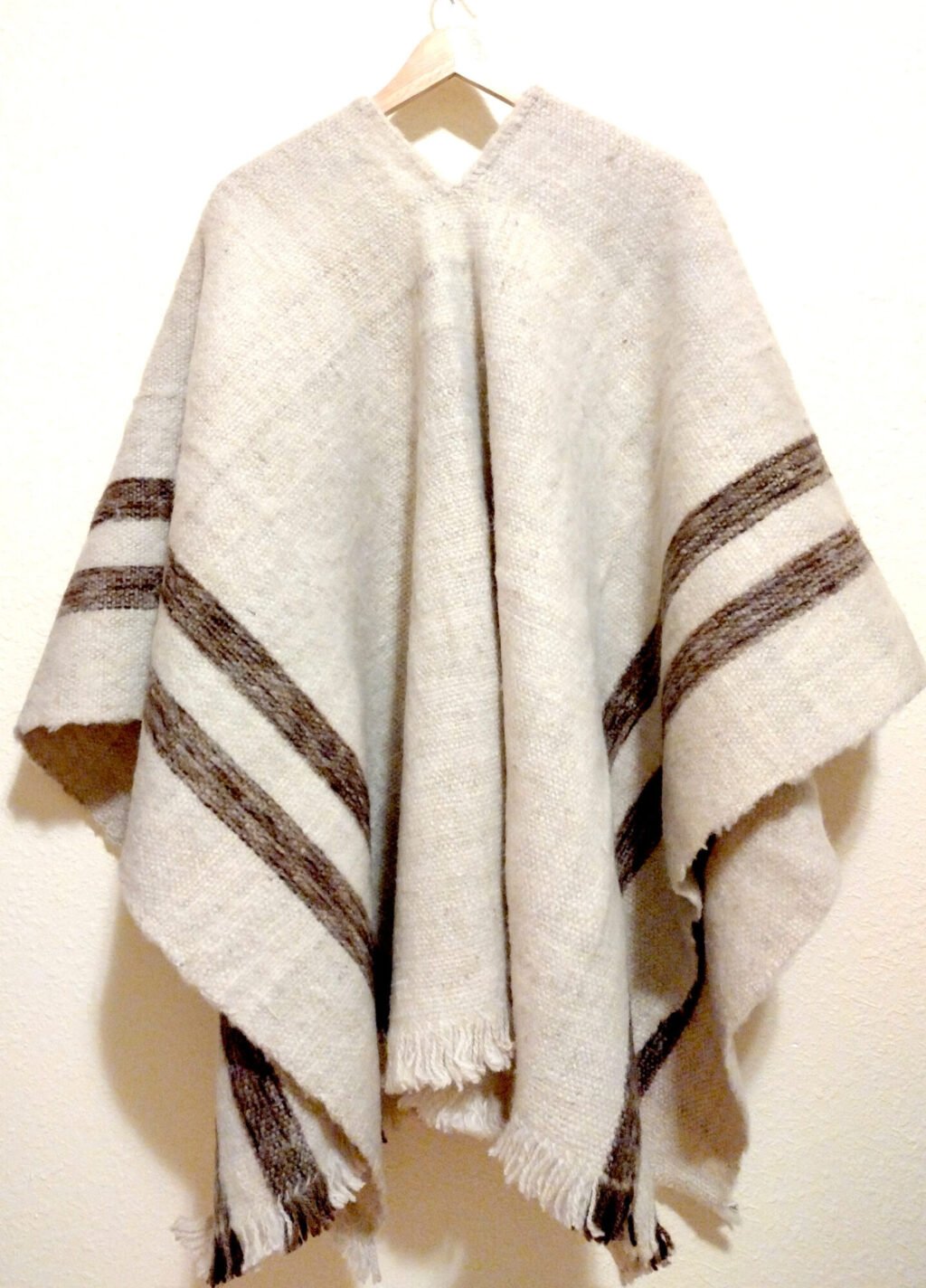 This poncho measures 67 inches long and 50.5 inches wide. If you find that wool cause you to itch, just wear a layer underneath. We love wearing our ponchos in the house as they allow us to stay comfortable with the heat set low, saving us money on our propane and electric bills.